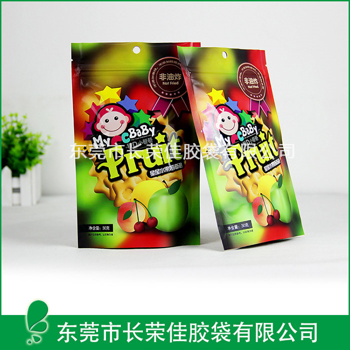 休闲零食直立自封拉链镀铝包装袋撕口和挂孔